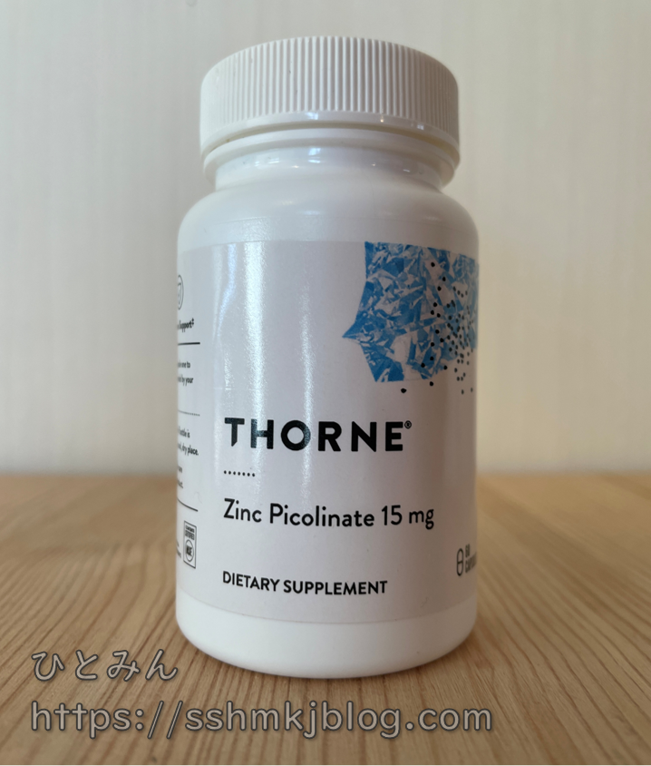 使っているのはTHORNEのZinc Picolinate 15mgです。iHerbで購入しています。